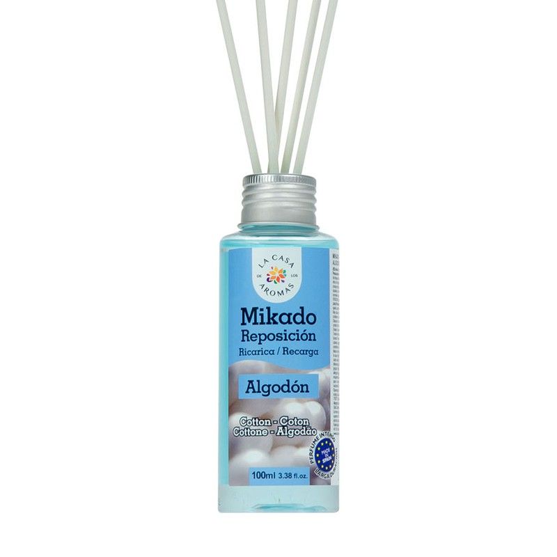 Remplissez votre contenant mikado habituel avec la recharge mikado. Placez les nouveaux bâtonnets dans le récipient pour absorber et libérer le parfum dans toute la pièce. Placer dans un endroit aéré pour mieux diffuser l'arôme dans toute la pièce. Si vous voulez augmenter l'intensité, vous pouvez retourner les tiges. Si vous n'avez pas de conteneur, vous pouvez placer les tiges directement dans le conteneur de remplacement. Pour ce faire, vous devez dévisser le capuchon, appuyer sur le haut pour retirer le tampon, revisser le capuchon et enfin placer les bâtons.