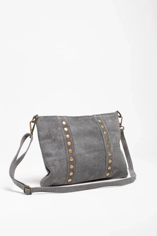 Sac Bandoulière En Cuir Avec Clous Dorés Gris